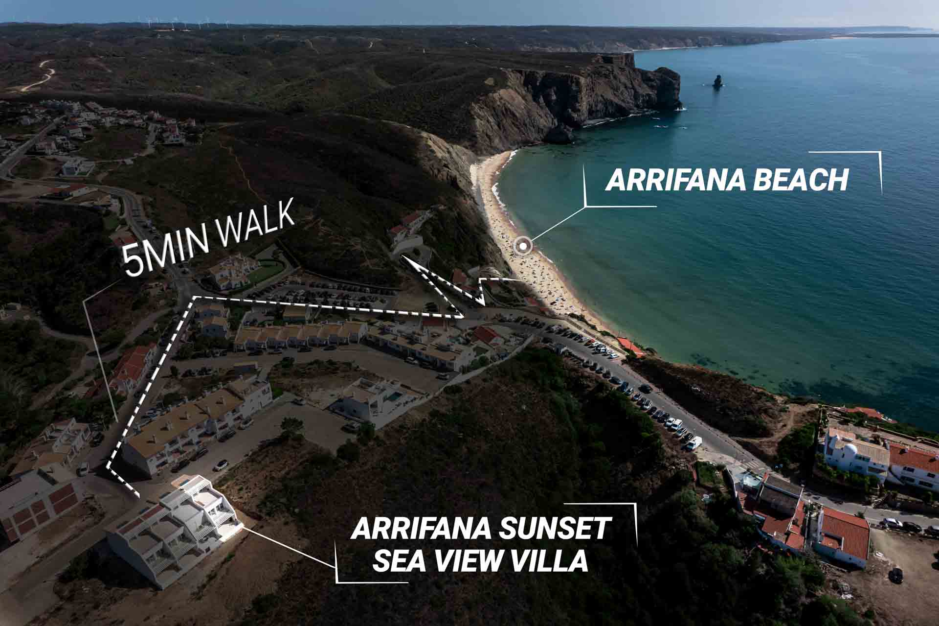 Arrifana Sunset Sea View Villa is a beautiful three storey townhouse, located a stones throw from the popular surfing beach, Arrifana - 5min walk!
